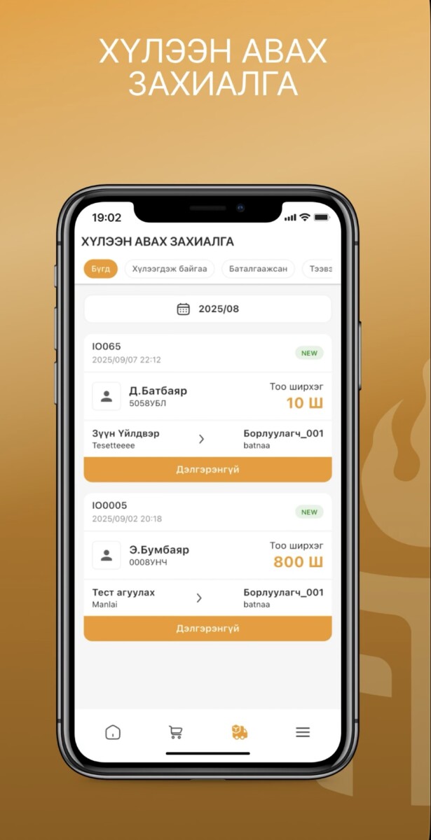 - Хатуу болон хийн түлшний худалдан авалтаа гар утсаар хийх,